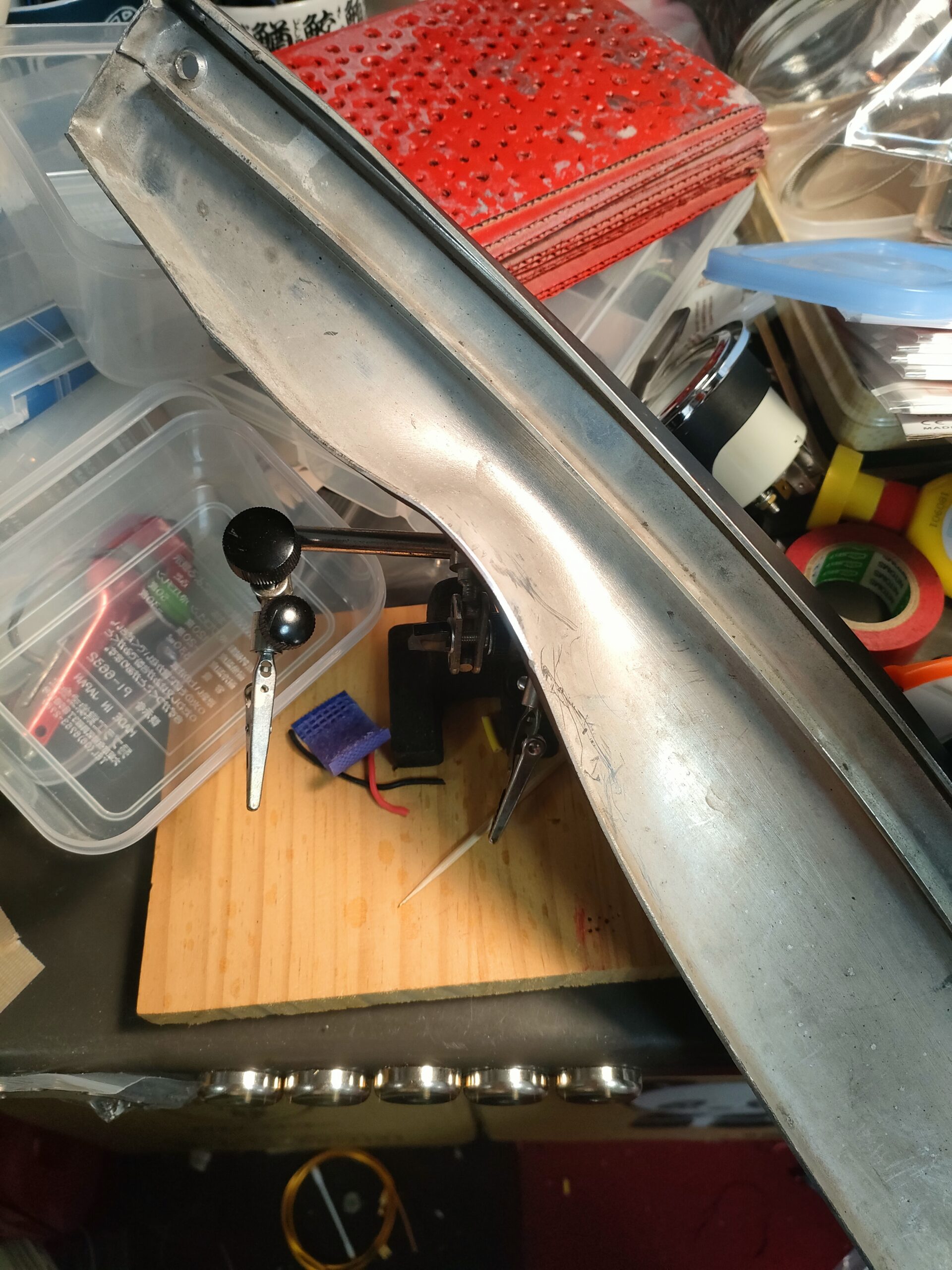 ハンダ付けとかもしてたので、クルマを後部だけジャッキアップしてたんですよね。
