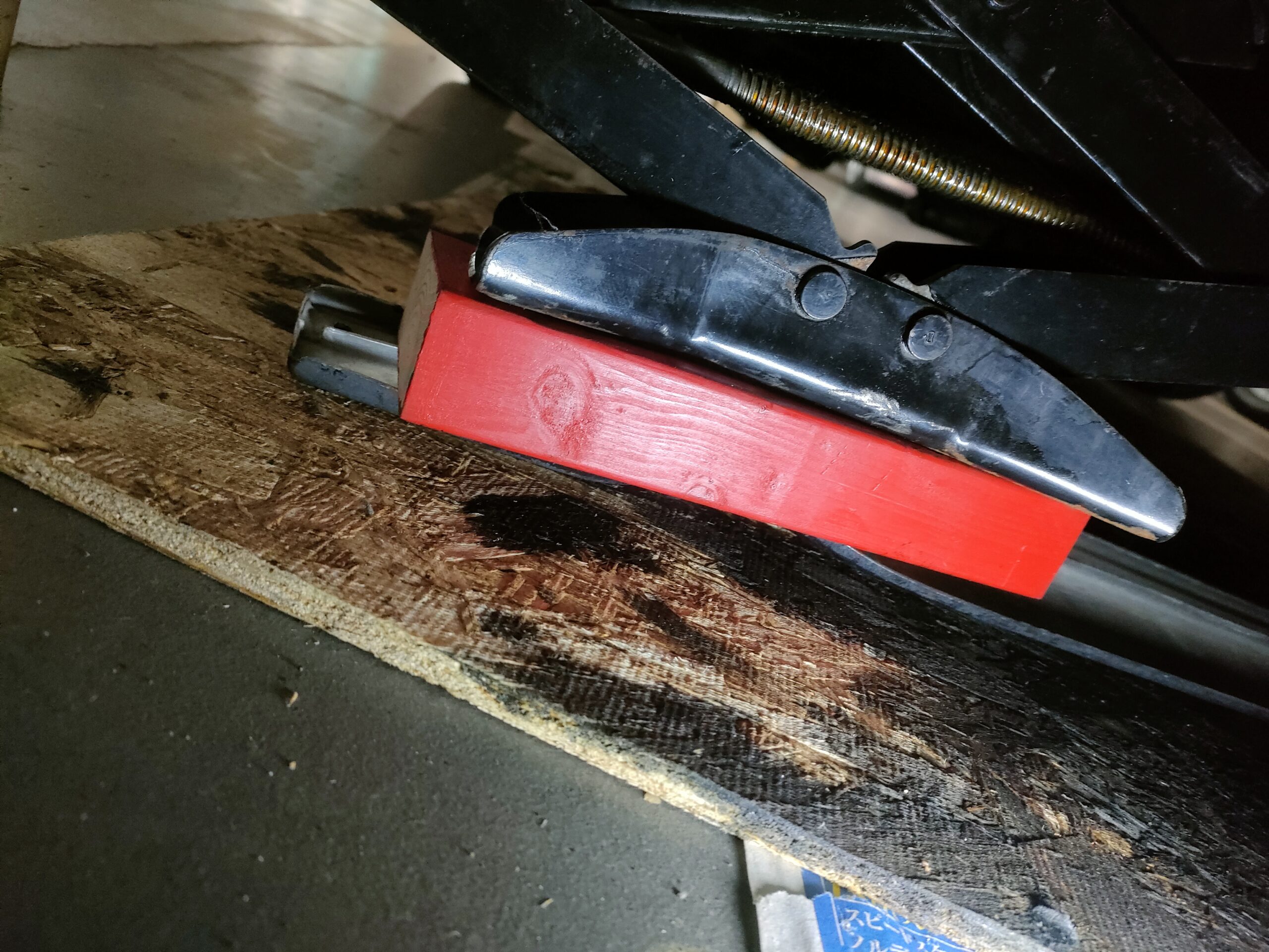 で、あれこれやってるうちに、再びジャッキアップするときに、ジャッキがズレてしまい、、