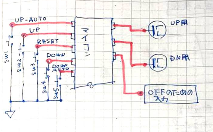 因みにAUTO動作中は、どのスイッチを押してもAUTO動作が中止されるようにします。